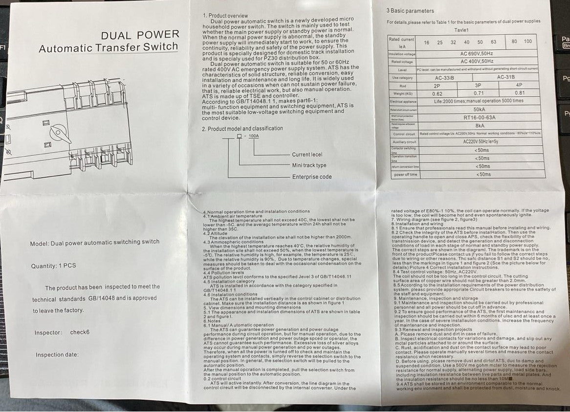 100 amp Electrical Selector Switches Dual Power Switch (2P 100A 220V)