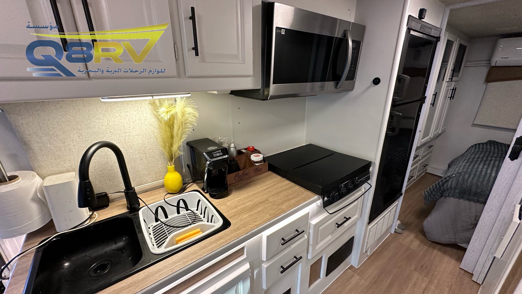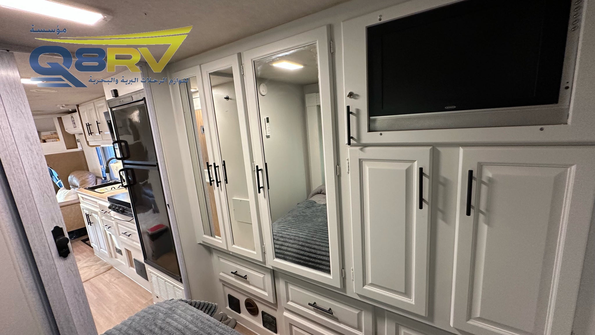 • توسعة Slide‑Out في الصالة وغرفة النوم، لتستمتع بمساحة أكبر (يمكن استخدام الكرفان كامل أو التوسعة مسكرة)