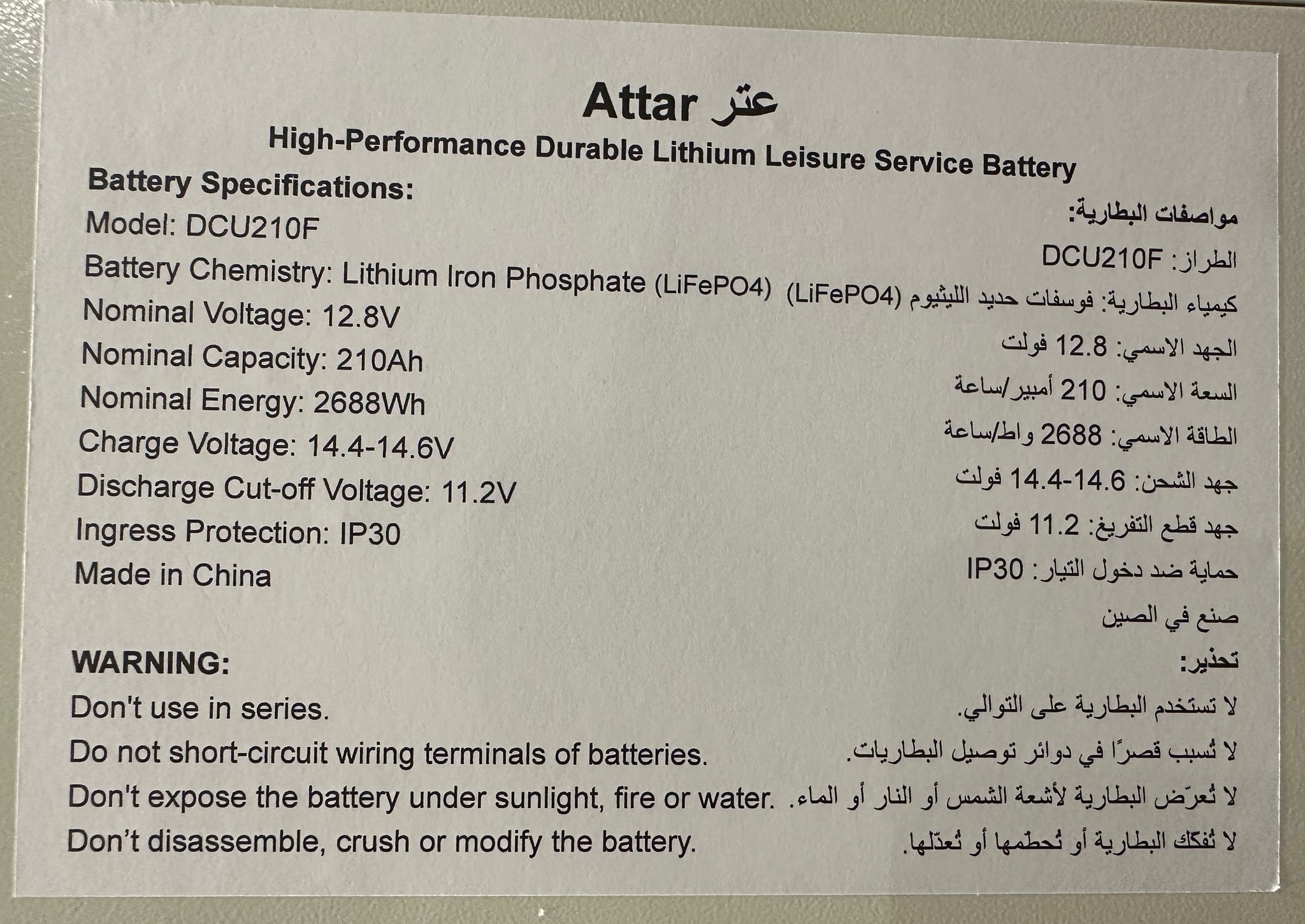 210 Amps Atter Lithium Battery بطارية ليثيوم عتر
