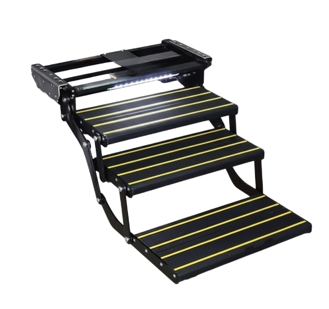 The Aluminum Entry 3 Step سلم المدخل is a sturdy manual ladder designed for safe and easy access. Featuring three steps and equipped with LED lights, it ensures better visibility and safety during use, especially in low-light conditions. Its lightweight aluminum build offers durability while remaining easy to handle. Ideal for entryways, this ladder supports secure climbing with stability and convenience in any environment.