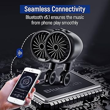• Heavy-Duty & Universal Fit: The LX-Q3, with its bullet-shaped metallic housing and polished chrome treatment, is a motorcycle Bluetooth speaker designed to fit handlebars ranging from 7/8 inch to 1 1/4 inch