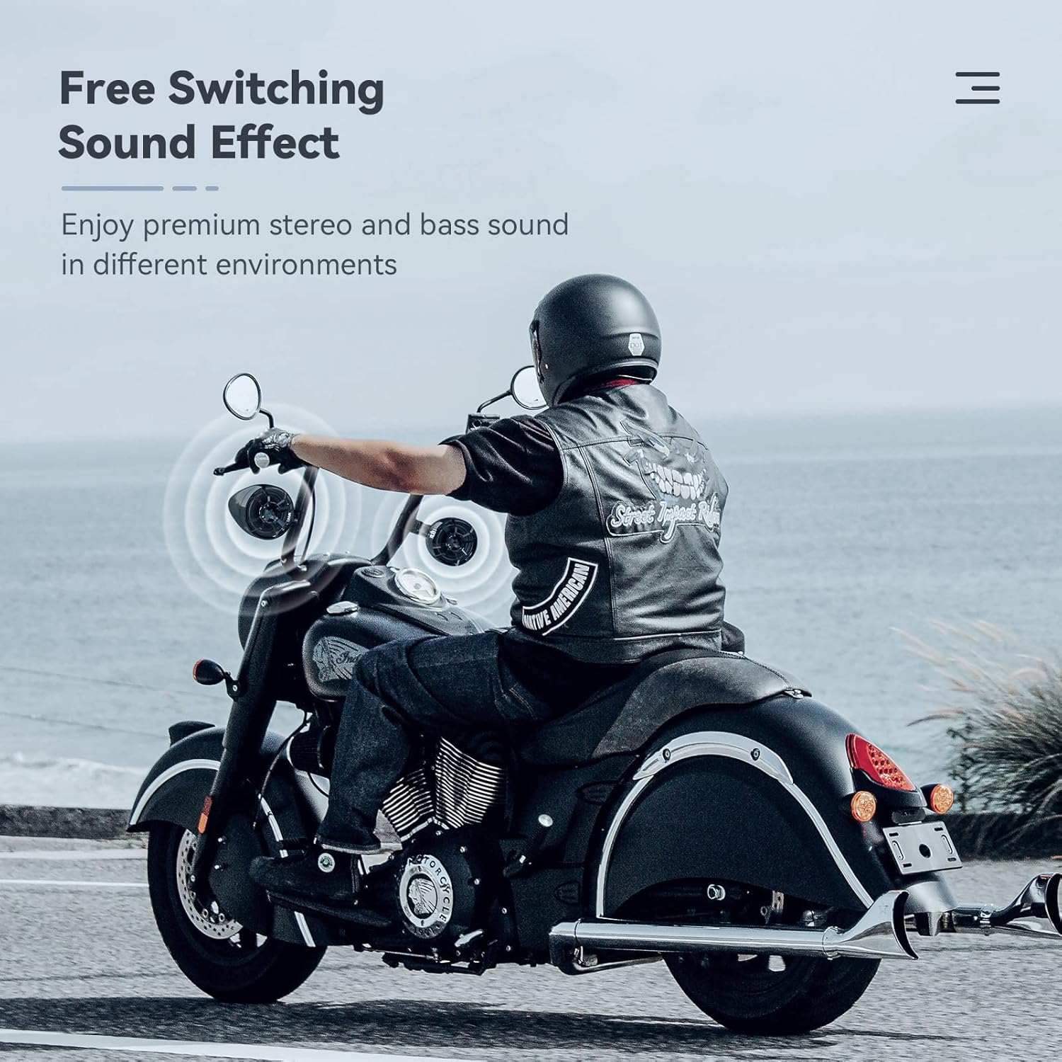 • Premium Stereo & Bass Sound: Experience clear music playback even at speeds of 75mph-80mph, thanks to the 150W Bluetooth speakers. Toggle between stereo and bass audio modes by double-clicking the Volume Down Button for a customized sound experience