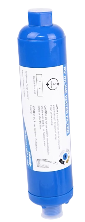 Camco TastePURE RV & Marine Water Filter works to improve the taste and smell of your drinking water for up to 120 days. It filters down to 150 microns. The filter connects to any exterior water connection.